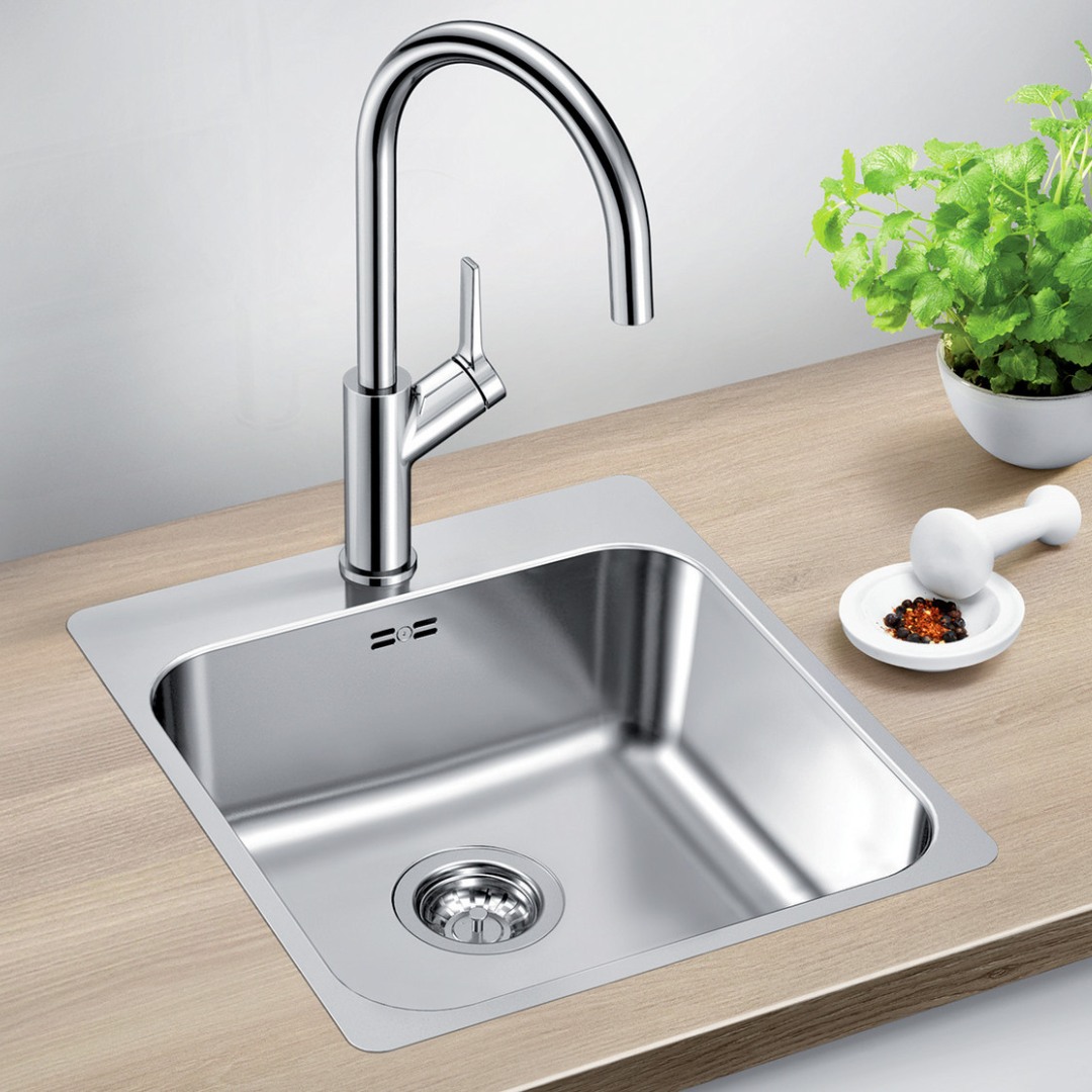 BLANCO SUPRA 400 IF predstavlja stilsku i praktičnu ugradnu sudoperu namenjenu manjim kuhinjskim prostorima ili kao dodatno korito u velikim kuhinjama. Sudopera je izrađena od plemenitog čelika (inox) visokog kvaliteta, koji je otporan na rđu, ogrebotine i svakodnevnu upotrebu, što garantuje dug vek trajanja i jednostavno održavanje.