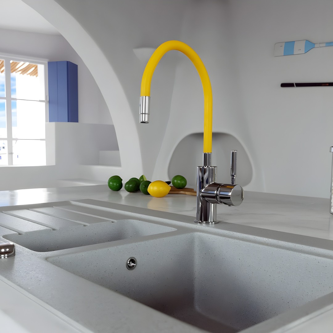 Ferro Zumba BZA4C – zuta slavina za sudoperu i lavabo predstavlja kvalitetnu i funkcionalnu bateriju sa fleksibilnim izlivom koja se lako prilagođava vašim potrebama. Ovaj model iz serije Zumba ima keramički regulator protoka vode, što osigurava dug vek trajanja i preciznu kontrolu protoka. Slavina se montira kao jednoručna baterija na sudoperu ili lavabo, a fleksibilni izliv omogućava slobodno oblikovanje i podešavanje visine i dužine u okviru prostora od 150 mm do 350 mm širine i 280 mm do 440 mm visine.