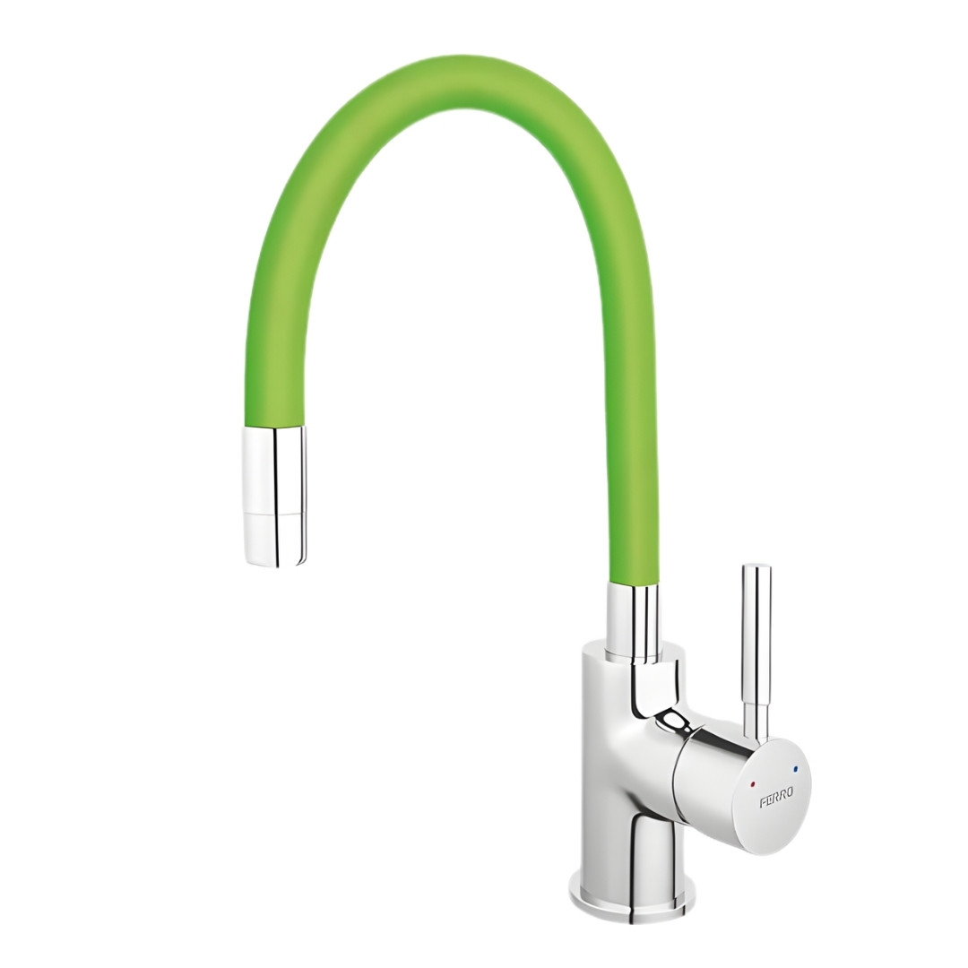 Ferro Zumba BZA4G – slavina za sudoperu i lavabo zelena pruža spoj funkcionalnosti, moderne estetike i izdržljive konstrukcije. Ovaj model iz Zumba serije je jednoručna baterija sa fleksibilnim izlivom koja omogućava praktično i jednostavno usmeravanje vode prema vašim potrebama.