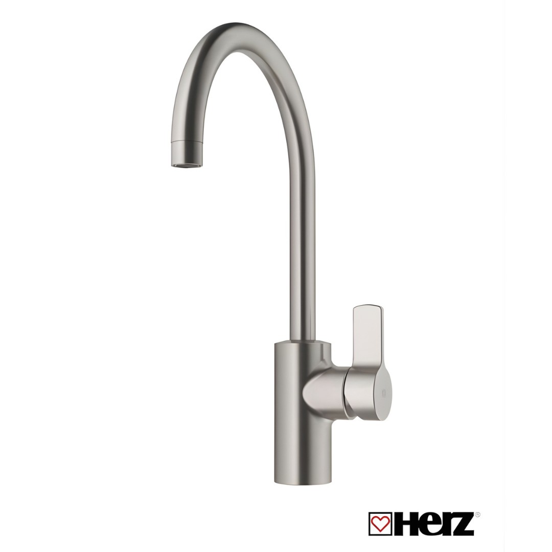 Baterija za sudoperu Herz Elite E20Ni 00103Ni je moderni kuhinjski mikser iz Elite serije – spoj elegantnog dizajna i visokog kvaliteta izrade. Ovaj model se montira kao stojeća baterija koja se priključuje na dovod vode iz zida, što ga čini kompatibilnim sa većinom standardnih kuhinjskih instalacija. Izrađena je od kvalitetnog mesinga, što doprinosi dugotrajnosti i otpornosti na koroziju, a završna obrada u nikl tonu daje sofisticiran i moderan izgled. Herz baterije su prepoznatljive po estetici i funkcionalnosti te su zastupljene u preko 75 zemalja širom sveta. Ugrađeni perlator visokog kvaliteta omogućava protok vode od oko 6 l/min, poboljšavajući uštedu vode i čineći pranje sudova udobnijim bez gubitka performansi. Serija Elite kombinuje ravne linije i meke prelaze, što bateriji daje privlačan izgled u modernim kuhinjama.