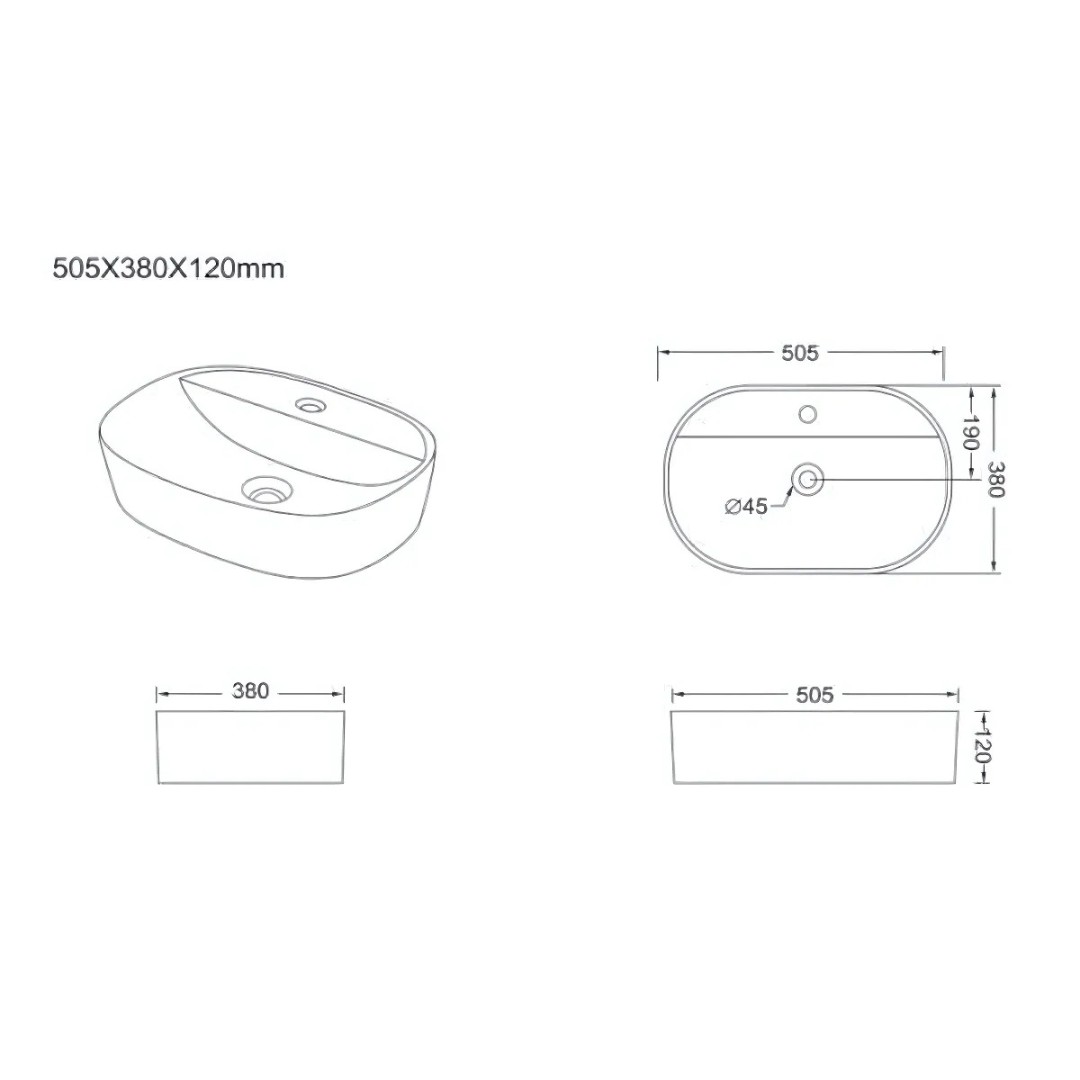 Linni S/MEB/C 01 – nadgradni lavabo 50,5 × 38 cm mat crni