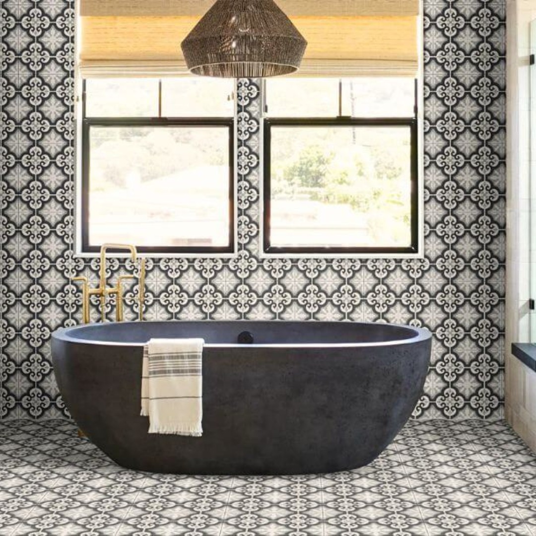 Zahvaljujuci dimenziji od 45×45 cm, idealna je za postavljanje u kupatilima, hodnicima i kuhinjama, dok je njena keramicka osnova izdrzljiva i laka za odrzavanje. Crno-bela paleta omogucava lako kombinovanje s modernim namestajem, drvenim detaljima i minimalistickim enterijerom.